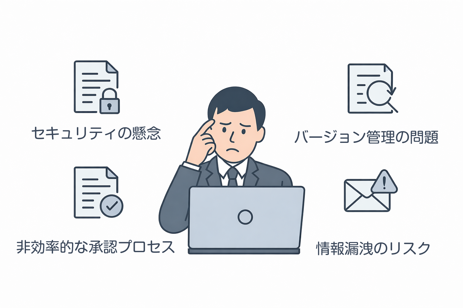 - ダウンロードベースのワークフローではデータ漏洩、運用ルールからの逸脱、外部からの無許可アクセスなどのセキュリティリスクがある。